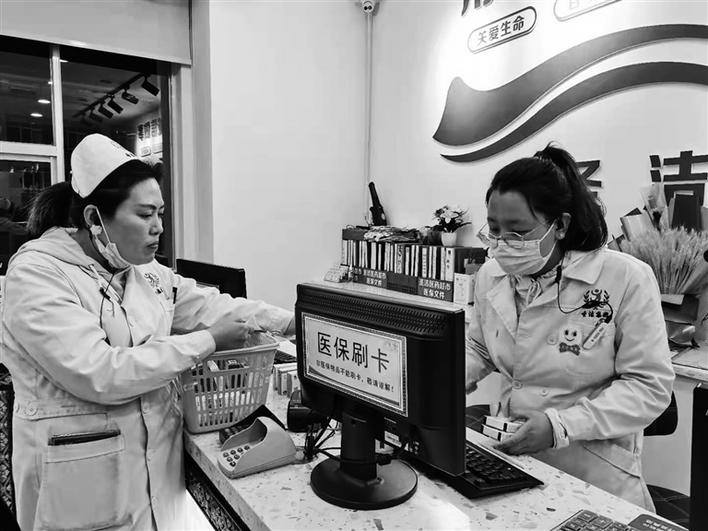 拉薩市某藥店工作人員幫市民刷卡結賬。