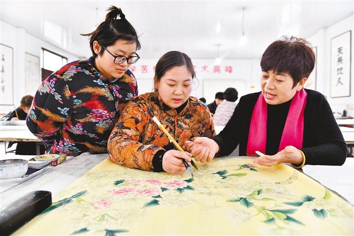 山東省菏澤市巨野縣依托“菏澤牡丹”的資源優(yōu)勢(shì),近年來(lái)著力打造工筆牡丹畫(huà)文化產(chǎn)業(yè),鞏固脫貧攻堅(jiān)成果,有序推進(jìn)鄉(xiāng)村振興。目前,巨野縣有50個(gè)繪畫(huà)專(zhuān)業(yè)村,從業(yè)人員達(dá)1.5萬(wàn)人。巨幅工筆牡丹畫(huà)作品先后亮相上合組織青島峰會(huì)、中國(guó)國(guó)際進(jìn)口博覽會(huì)等重大活動(dòng)。