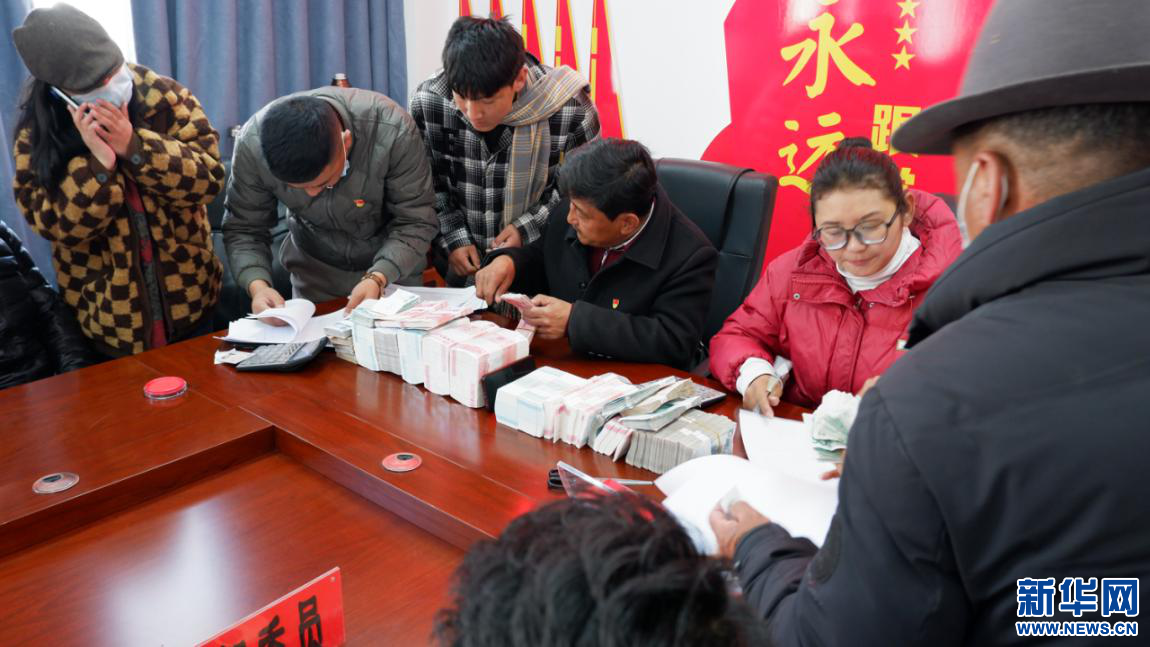 2月23日,維巴村維巴組、曲色組股份經(jīng)濟(jì)合作社分紅現(xiàn)場。新華網(wǎng) 殷小燕攝