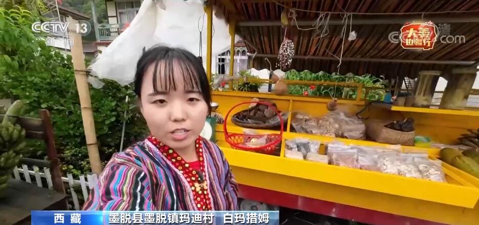 墨脫縣墨脫鎮(zhèn)瑪?shù)洗?白瑪措姆:我是墨脫縣瑪?shù)洗宓陌赚敶肽?。這是我們家的水果銷售車。這是我們的大檸檬,它現(xiàn)在看起來已經(jīng)非常大,但在8月份會更大一些;這是我們的黃瓜;這是我們的香蕉,據(jù)當?shù)厝苏f,它有一定的止瀉作用。瑪?shù)洗搴0沃挥?60米,冬無嚴寒、夏無酷暑,一年四季如春,特別適宜水果生長。這些年,我們村里投入了30多萬元,帶領(lǐng)鄉(xiāng)親們建設(shè)了近200畝的香蕉園,我們靠著這些特色水果,每家每戶每年的收入增加了1萬多塊錢?,F(xiàn)在,瑪?shù)洗宓墓瞎阶咴竭h了,村民們的生活越來越甜美。