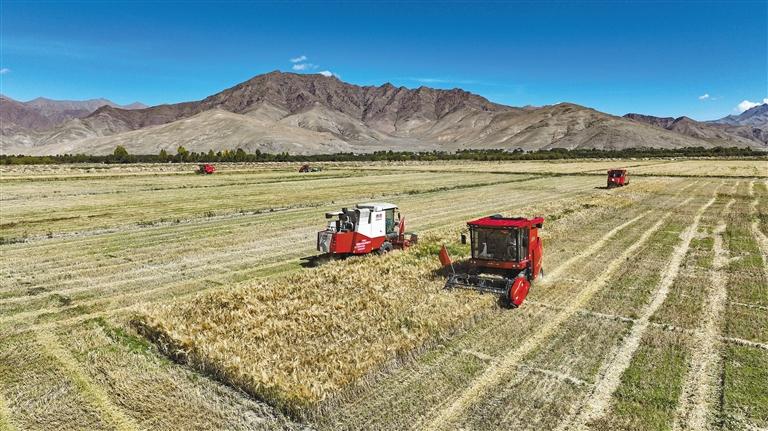 日喀則市素有“西藏糧倉”的美譽(yù),西藏一多半的青稞都產(chǎn)自這里。9月的日喀則,青稞飄香,各縣區(qū)全面進(jìn)入秋收,廣大農(nóng)牧民搶抓有利時(shí)機(jī),在田間地頭忙碌。目前全市收割面積已達(dá)74萬余畝,秋收進(jìn)度與往年基本一致。
