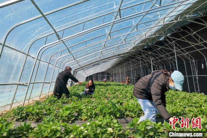 圖為11月11日,西藏日喀則康馬縣薩馬達鄉(xiāng)草莓采摘活動現(xiàn)場。 張玉祥 攝