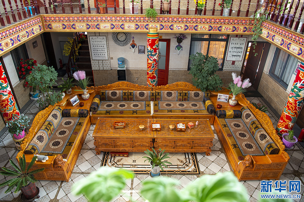 圖為扎西曲登社區(qū)一家民宿的藏戲主題客房(12月9日攝)。新華網(wǎng) 旦增努布 攝