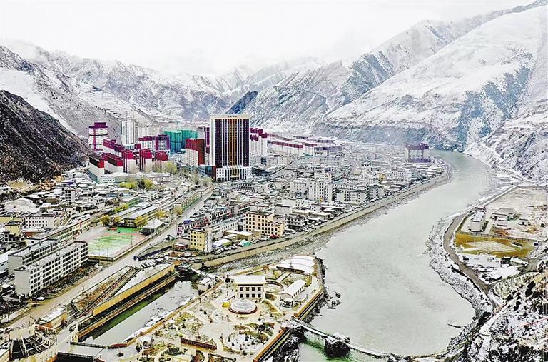 12月的藏北高原已被嚴(yán)寒籠罩,頂著風(fēng)雪,記者來到素有“藏北江南”美譽的比如縣,縣城里縱橫交錯的柏油路、水泥路在白雪的映襯下,顯得格外開闊整潔;街道兩旁高大挺拔的樹披上了綿綿白雪,樹枝上懸掛著亮晶晶的銀條;一棟棟紅白色調(diào)搭配的房屋外墻,經(jīng)過雪水的蕩滌,反射著太陽的光輝,嶄新如初、盡顯生機(jī)……