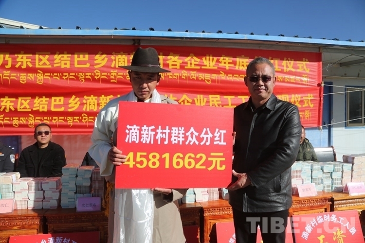 中國(guó)西藏網(wǎng)訊 2月2日,西藏自治區(qū)山南市乃東區(qū)結(jié)巴鄉(xiāng)滴新村2022年度集體經(jīng)濟(jì)分紅、集體企業(yè)民工工資兌現(xiàn)儀式在滴新村舉行。2022年,滴新村分紅資金為4581662元,比2021年增加726556元。