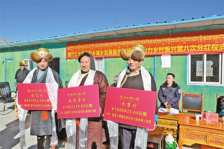 近日,拉薩市墨竹工卡縣甲瑪鄉(xiāng)城鄉(xiāng)發(fā)展服務(wù)有限公司舉行第八次分紅儀式,為全鄉(xiāng)群眾分紅294萬(wàn)元。