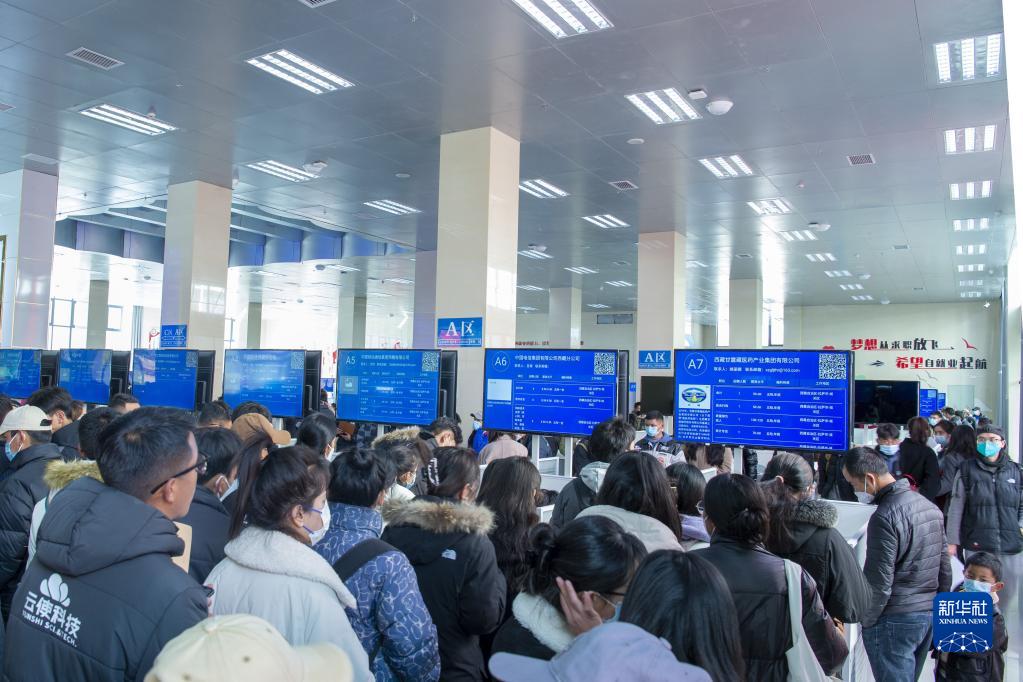 2月8日,西藏自治區(qū)2023年春風(fēng)行動暨就業(yè)援助月招聘活動現(xiàn)場。新華社發(fā) (旦增努布攝)