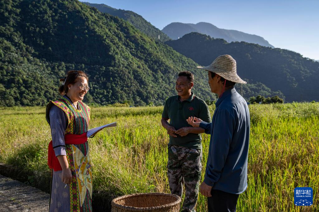 在墨脫縣德興鄉(xiāng),鄉(xiāng)黨委副書(shū)記白瑪曲珍(左)在田間調(diào)研(2023年10月13日攝)。新華社記者 孫非 攝
