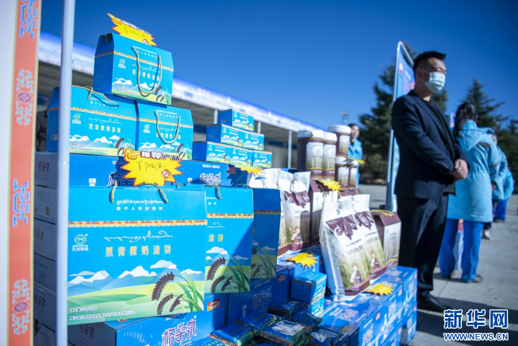 11月15日,“家鄉(xiāng)水·格桑泉”訂購會特色產(chǎn)品展區(qū)。新華網(wǎng) 柑丹鴦琦 攝