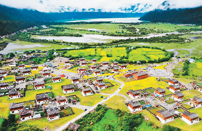 5年前,工布江達縣決定發(fā)展錯高村的鄉(xiāng)村旅游,并打出一套“組合拳”:一是打通并升級進村道路,如今已形成了一側(cè)是巴松措湛藍湖水、一側(cè)是雪山森林的景觀路;二是將錯高村整村搬遷至新址,古村則作為文化旅游資源被保護下來;三是創(chuàng)新民宿發(fā)展模式,將新村里村民多余的房屋集中起來,租賃給專業(yè)旅游企業(yè),集中發(fā)展民宿。