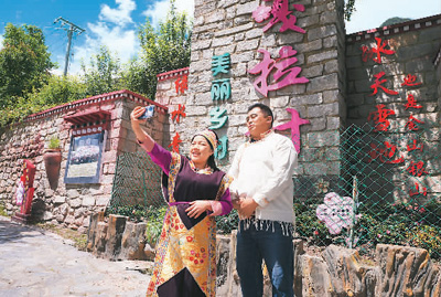 村民巴珍家的藏式小樓,院內(nèi)鮮花簇簇、室內(nèi)溫暖如春,二樓的3個房間租給旅游企業(yè)用作客房?!耙荒攴孔馐杖胗?萬多元,我在旅游公司打工,月工資4000多元,一年收入七八萬元,關(guān)鍵是工作生活都在自己村里,簡直是太方便了。”巴珍很滿意現(xiàn)在的生活。旦增達杰介紹,光房屋租金一項,村民戶均年增收3萬多元。