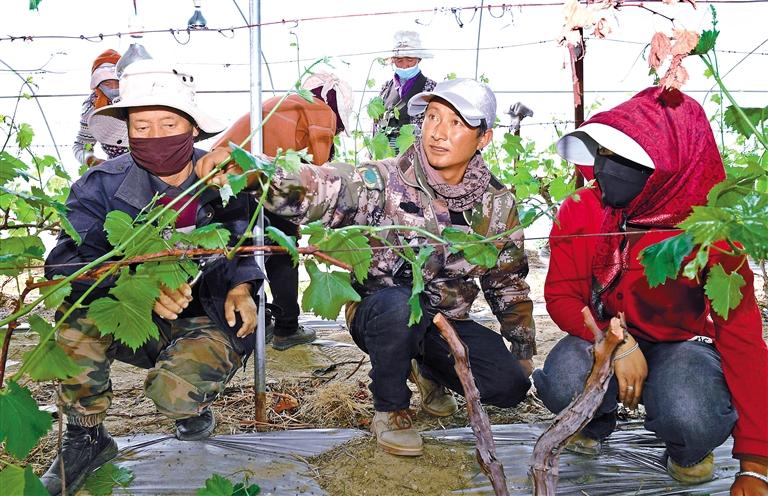 圖為技術(shù)員指導群眾為葡萄剪枝。記者 旦增蘭澤 攝