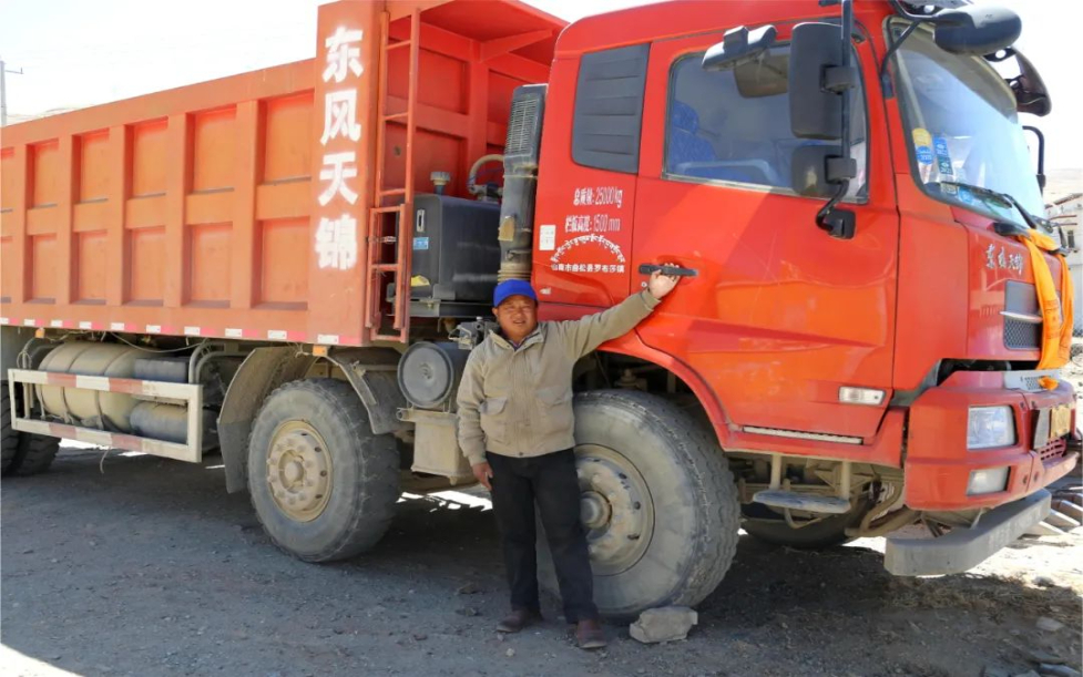 圖為運(yùn)輸車隊(duì)司機(jī)次旦多吉和他的貨車。