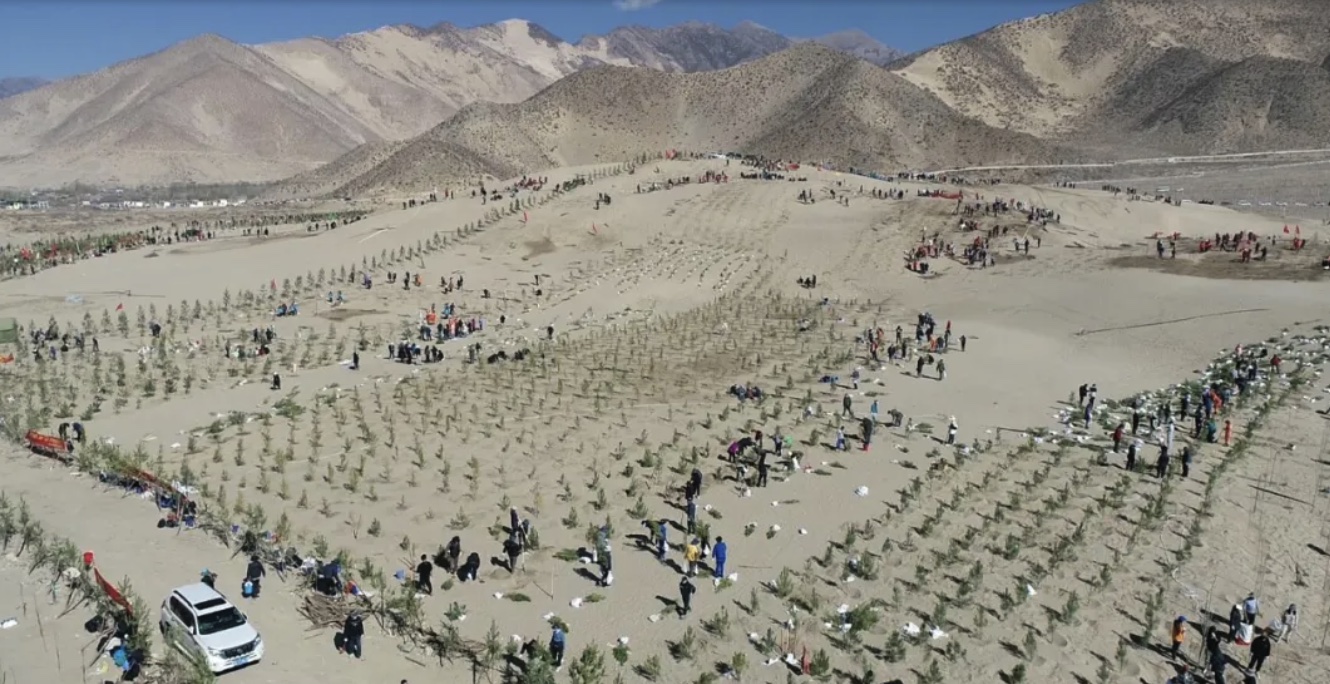 彼時的雅江中游河畔是一片土地沙化嚴(yán)重、風(fēng)沙肆虐的荒蕪之地。據(jù)原山南地區(qū)林業(yè)局局長李純祿回憶:離江較近的農(nóng)田風(fēng)蝕嚴(yán)重,有的地塊一年要重播兩三次。附近草場沙化嚴(yán)重。有時沙塵暴卷起的揚沙達數(shù)十米甚至數(shù)百米之高,遮天蔽日,天昏地暗。