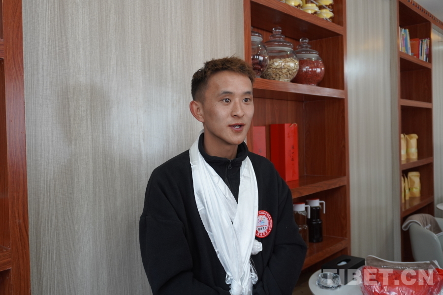 圖為正在接受采訪的格?;ㄩ_體驗(yàn)館運(yùn)營(yíng)負(fù)責(zé)人丹增洛色 攝影:張曉琪