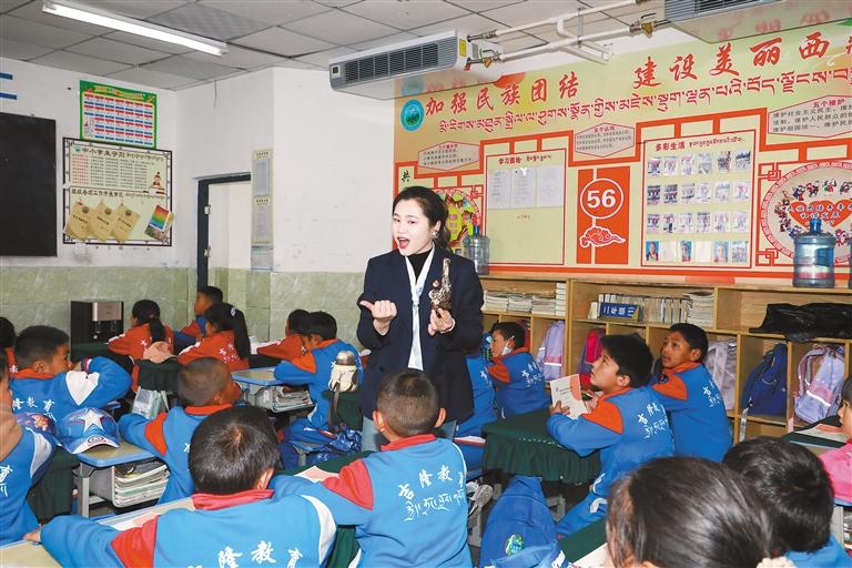 圖為工作人員在為學(xué)生進(jìn)行科普教育。本報(bào)記者 旦增嘎瓦 攝