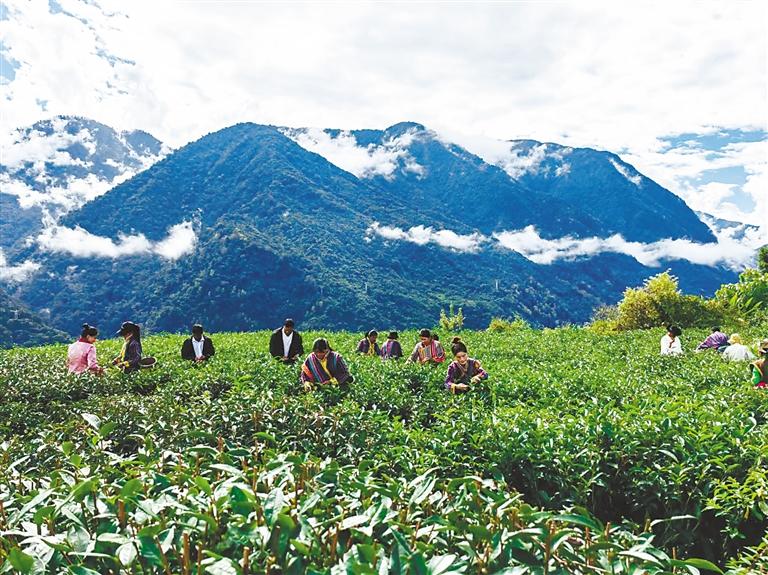 圖為察隅農(nóng)場(chǎng)有限公司千畝茶園采茶現(xiàn)場(chǎng)。