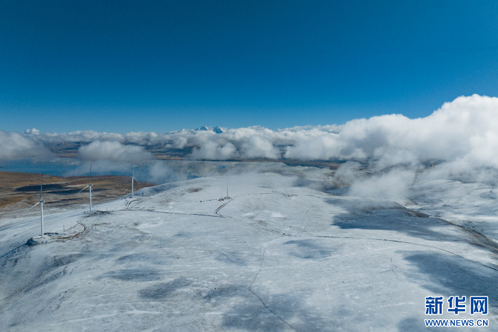 圖為西藏措美哲古風電項目一處風電機組(無人機照片)。新華網(wǎng) 旦增努布 攝