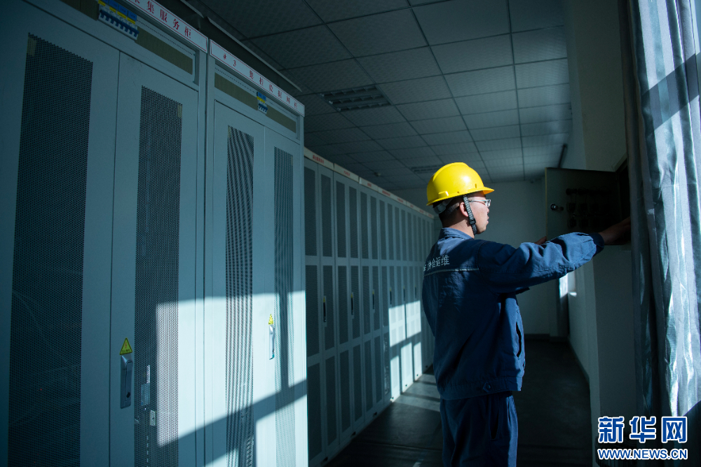 工作人員在110千伏協(xié)合措美縣20兆瓦MW并網(wǎng)光伏電站進行日常檢查。新華網(wǎng) 旦增努布 攝