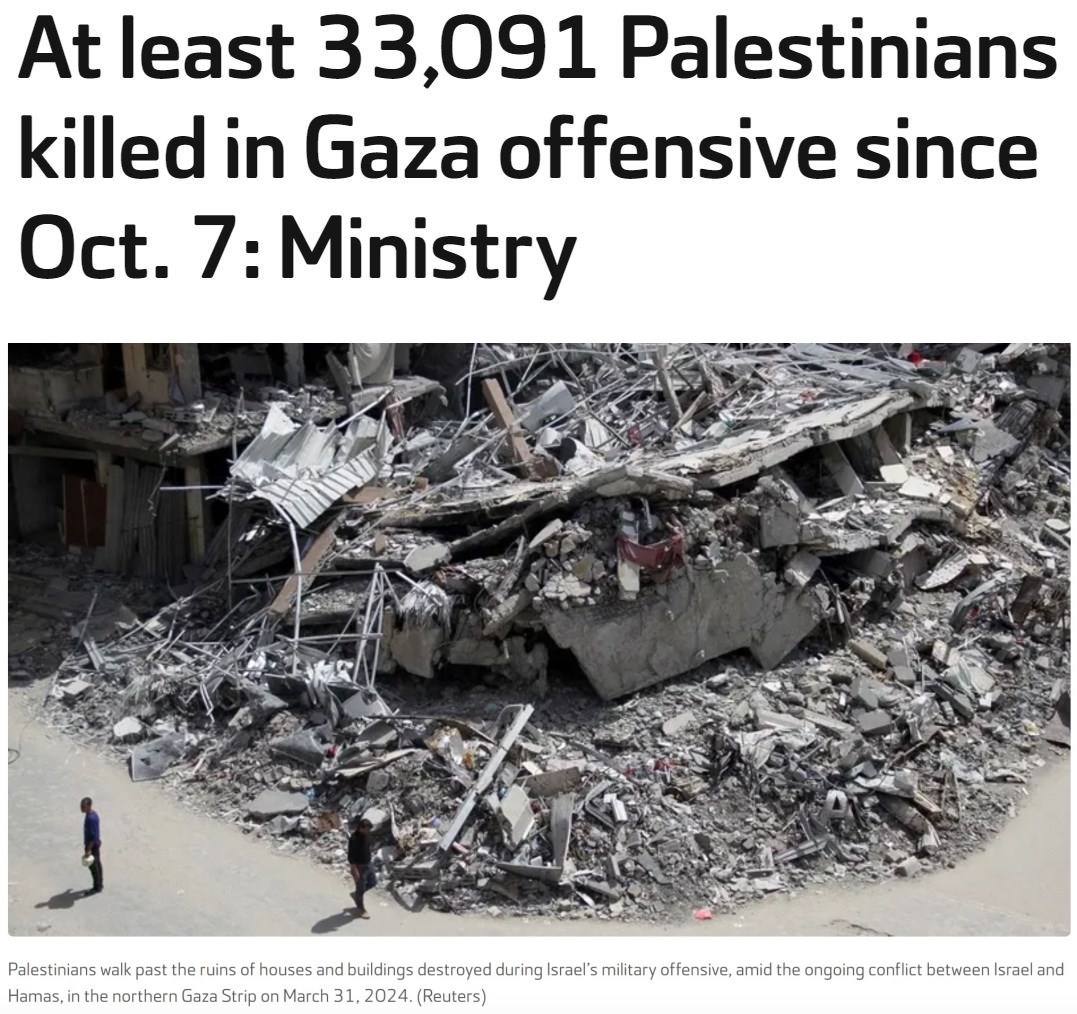 根據(jù)加沙衛(wèi)生部門當(dāng)?shù)貢r(shí)間5日提供的數(shù)據(jù),以色列在加沙地帶的軍事行動已導(dǎo)致超過3.3萬人死亡,超過7.5萬人受傷,其中大部分是巴勒斯坦婦女和兒童。