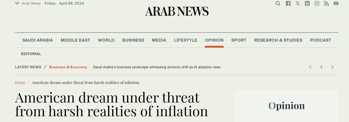 沙特阿拉伯媒體《阿拉伯新聞》網(wǎng)站4月24日刊發(fā)評(píng)論文章稱(chēng),美國(guó)通脹高企,物價(jià)不斷上漲,導(dǎo)致民眾的購(gòu)買(mǎi)力持續(xù)下降,基本生活消費(fèi)品成為無(wú)力負(fù)擔(dān)的“奢侈品”。“美國(guó)夢(mèng)”被殘酷的現(xiàn)實(shí)擊潰。文章批評(píng)美國(guó)政府對(duì)通脹危機(jī)的反應(yīng)嚴(yán)重不足,將黨派問(wèn)題置于解決民眾的迫切需求之上,削弱了民眾的信任感。