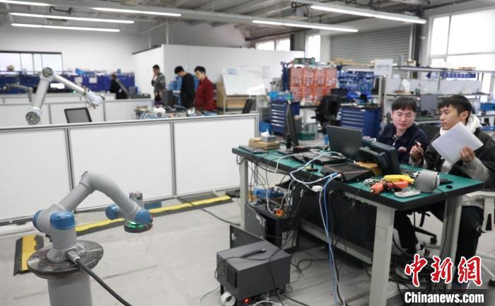 人工智能讓中國制造業(yè)從“追趕者”變身“領(lǐng)跑者”。圖為中科新松的工作人員正在對(duì)機(jī)器手臂進(jìn)行位置標(biāo)定。 張亨偉 攝
