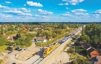 在匈塞鐵路項(xiàng)目現(xiàn)場,鋪軌機(jī)正在塞爾維亞邊境的蘇博蒂察進(jìn)行鋪軌作業(yè)。