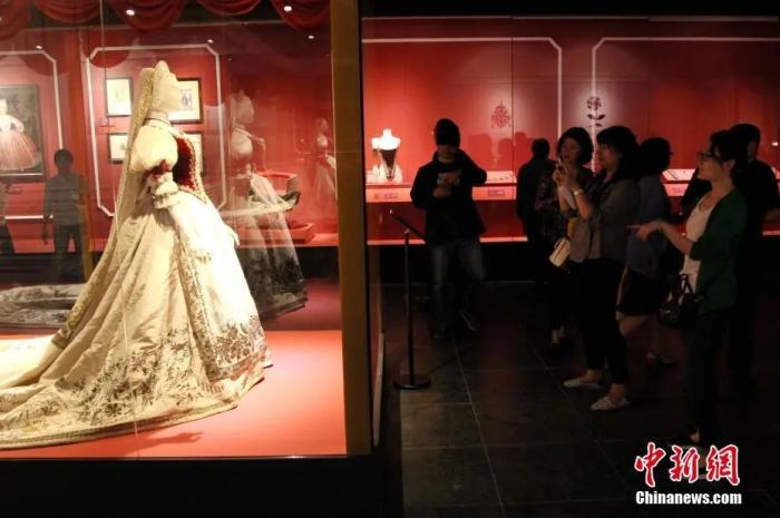 2018年5月28日,展出的匈牙利宮廷正裝吸引民眾。當(dāng)日,“茜茜公主與匈牙利——17-19世紀(jì)的匈牙利貴族生活”展覽于西安的陜西歷史博物館開展,這是陜西省第一次引進(jìn)匈牙利文物展覽。中新社記者 張遠(yuǎn) 攝