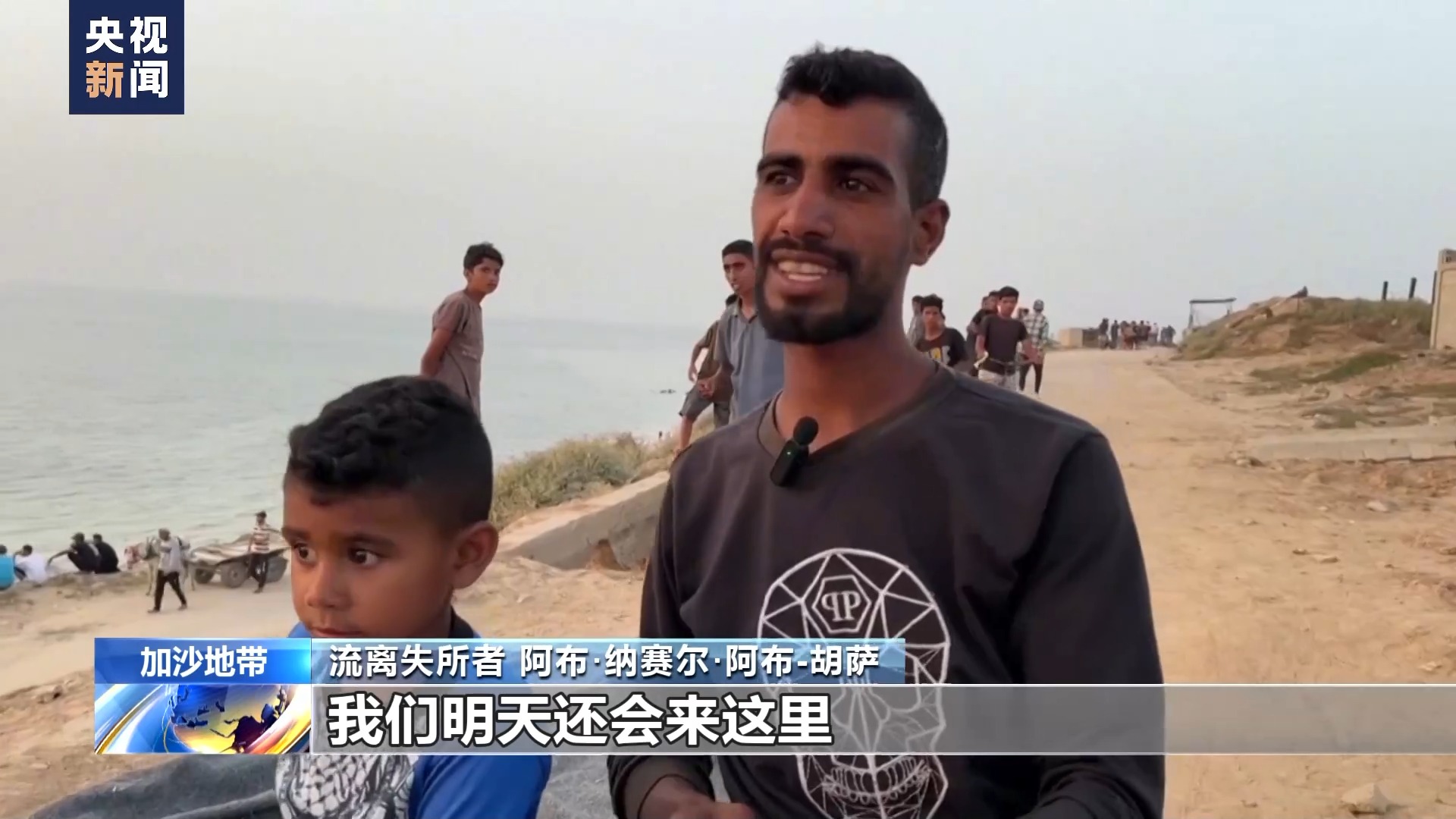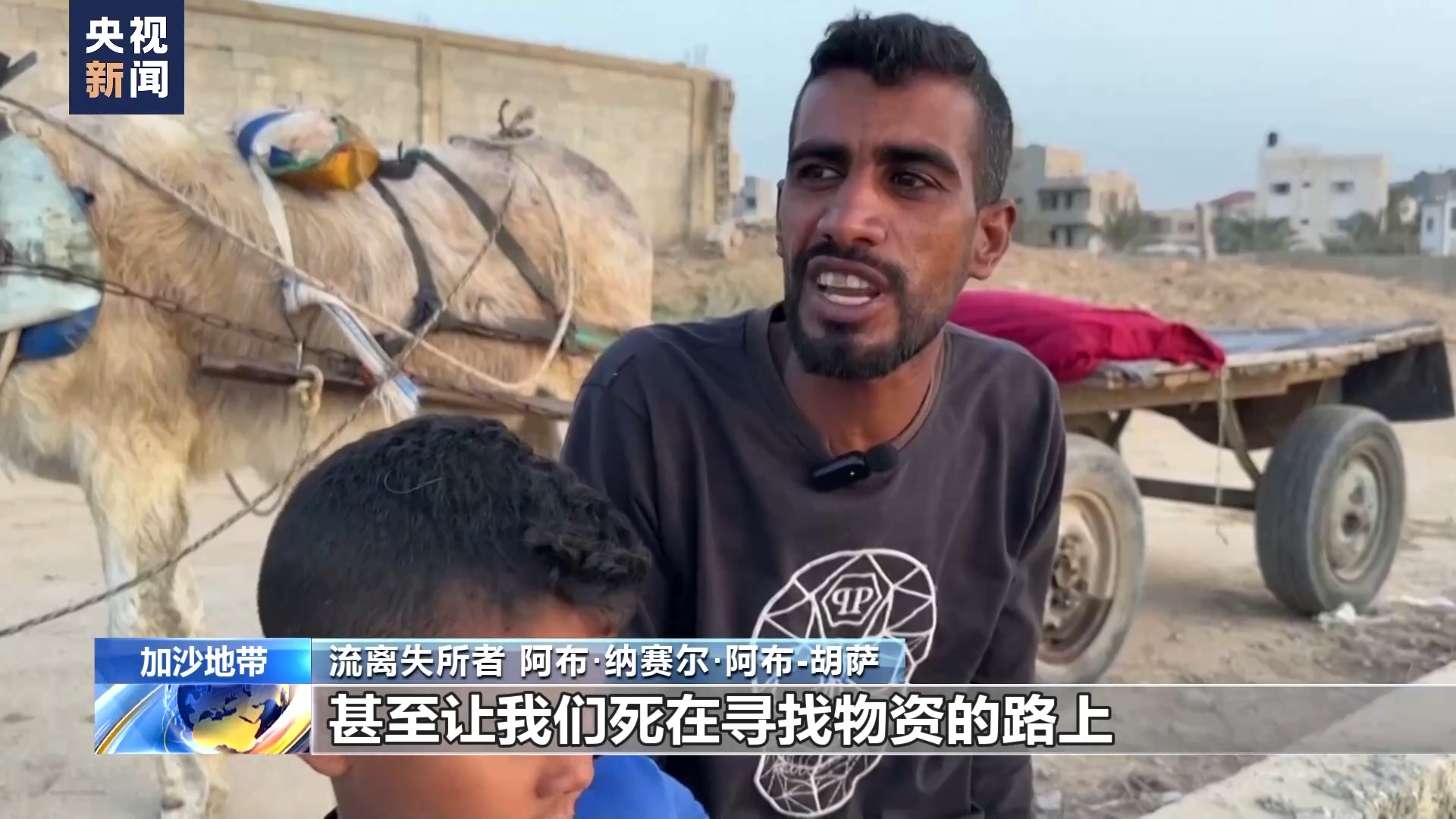 流離失所者 阿布·納賽爾·阿布-胡薩:我們明天還會(huì)來(lái)這里,看看能不能領(lǐng)到援助物資,幫助我和孩子們活下去。