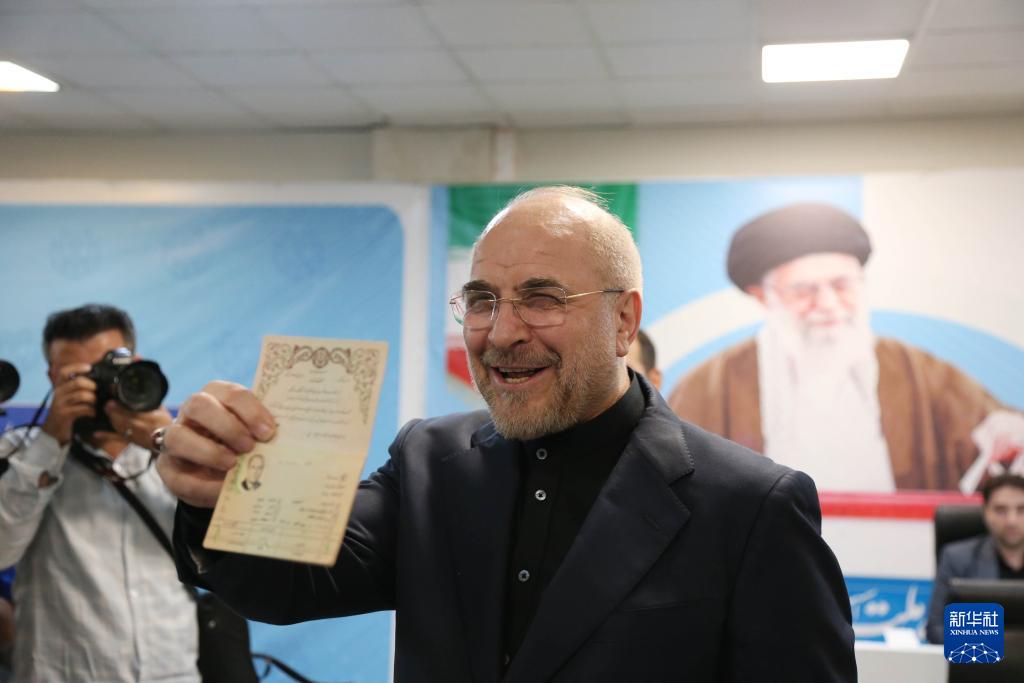 6月3日,伊朗議會(huì)議長(zhǎng)卡利巴夫在德黑蘭參加伊朗總統(tǒng)選舉候選人登記。?新華社記者 沙達(dá)提 攝