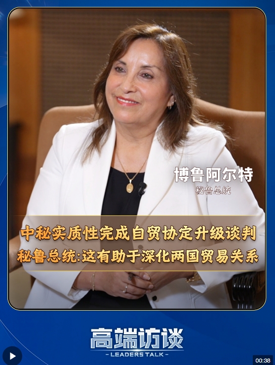 6月28日,中國(guó)與秘魯宣布實(shí)質(zhì)性完成自貿(mào)協(xié)定升級(jí)談判。秘魯總統(tǒng)博魯阿爾特在接受總臺(tái)《高端訪談》專訪時(shí)表示,中國(guó)是秘魯?shù)谝淮筚Q(mào)易伙伴,兩國(guó)新簽署的諒解備忘錄,將有助于深化兩國(guó)貿(mào)易關(guān)系,進(jìn)一步加強(qiáng)雙邊關(guān)系。