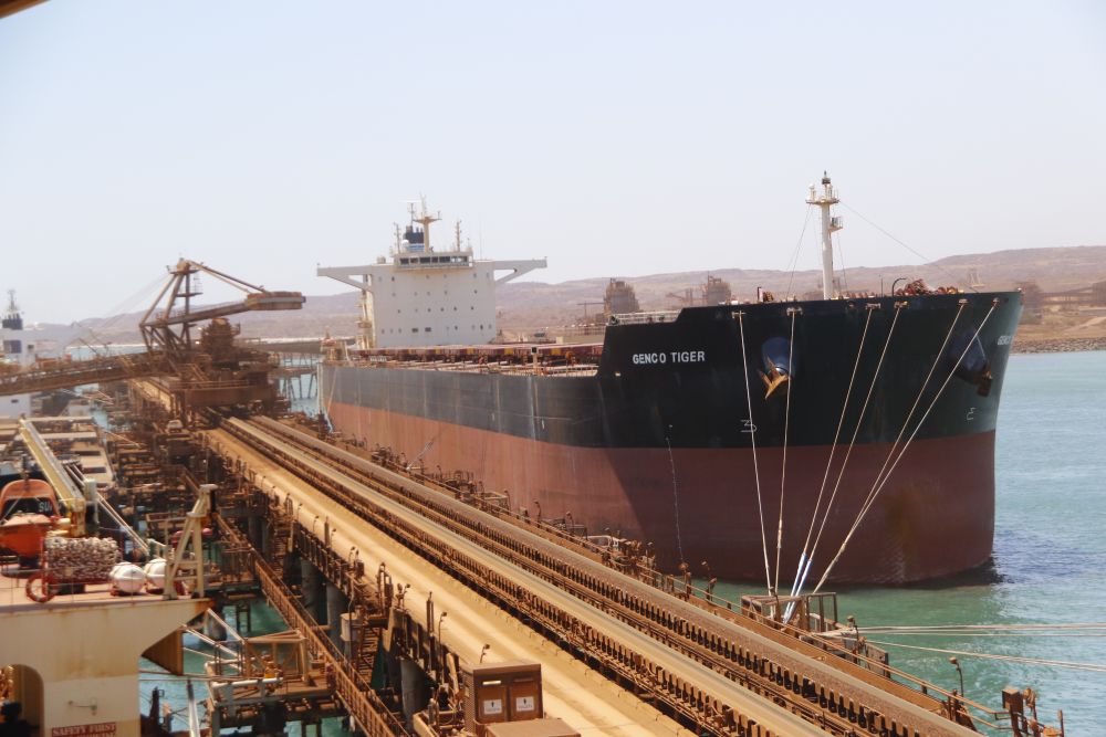 2023年10月20日,一艘運(yùn)輸鐵礦石的遠(yuǎn)洋貨輪停泊在澳大利亞的丹皮爾港。新華社記者郝亞琳攝