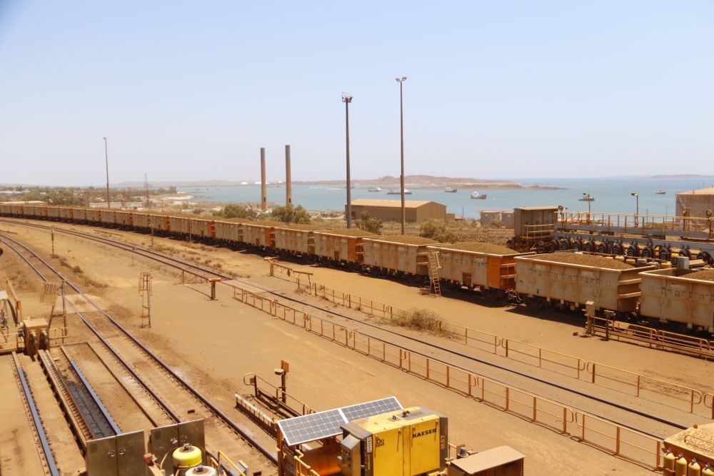 2023年10月20日,在澳大利亞卡拉薩,一列貨運(yùn)列車正在將鐵礦石運(yùn)往港口裝船。新華社記者郝亞琳攝
