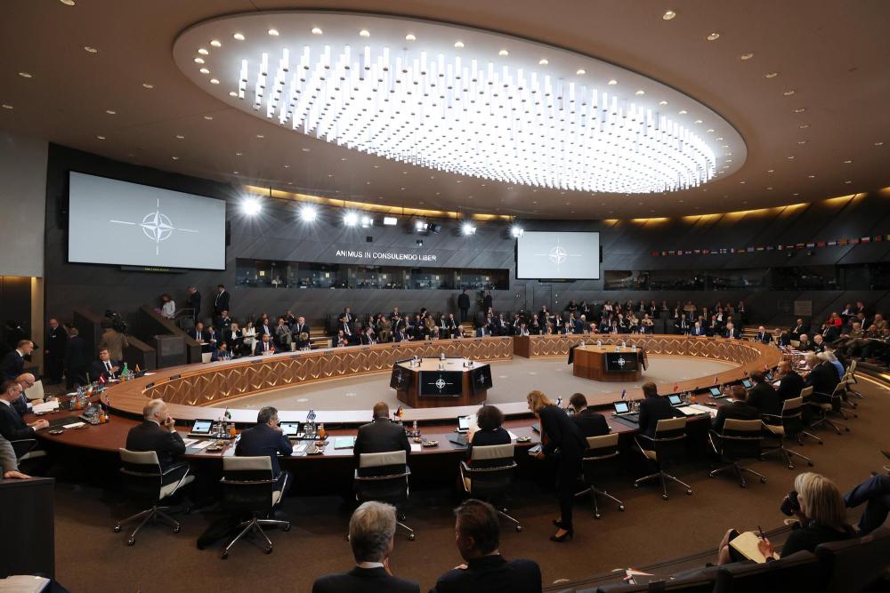這是6月14日在比利時布魯塞爾北約總部拍攝的北約防長會現場。新華社記者趙丁喆攝