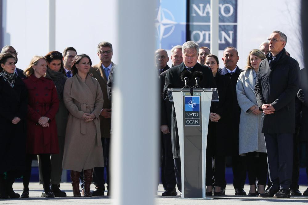 2023年4月4日,在比利時布魯塞爾的北約總部,芬蘭總統(tǒng)尼尼斯托在芬蘭加入北約儀式上發(fā)言。新華社記者鄭煥松攝