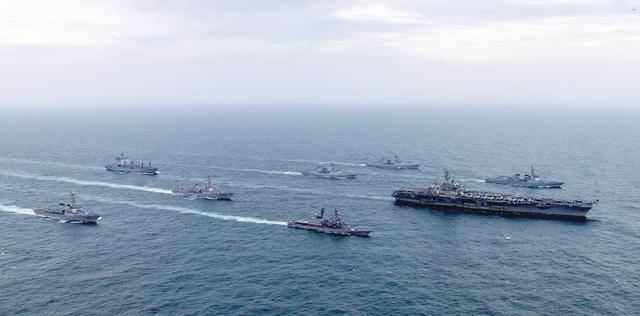 例如,美軍在西太平洋進(jìn)行多邊反潛作戰(zhàn)演習(xí),在南海與菲律賓海軍進(jìn)行聯(lián)合行動(dòng),并與日本和韓國(guó)在東海進(jìn)行三邊演習(xí)。此外,美國(guó)還與日本海上自衛(wèi)隊(duì)在菲律賓附近水域舉行了演習(xí)。