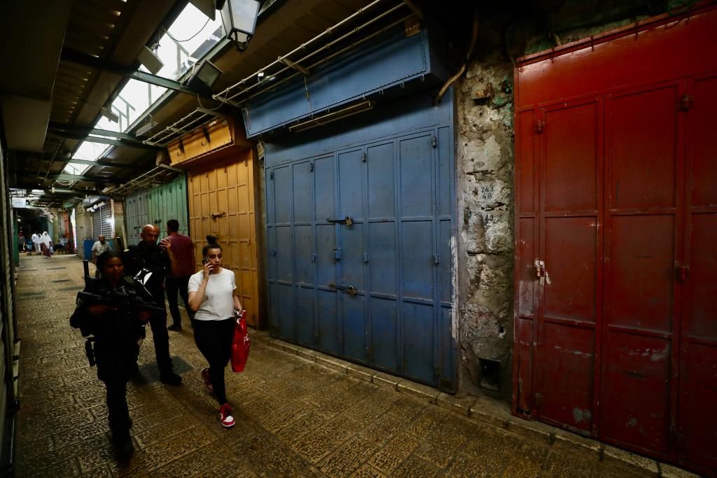 7月31日,在耶路撒冷老城,行人經(jīng)過(guò)關(guān)門(mén)的店鋪。當(dāng)日,耶路撒冷老城商戶(hù)舉行罷市,抗議哈馬斯領(lǐng)導(dǎo)人伊斯梅爾·哈尼亞遇襲身亡。新華社發(fā)(賈馬爾·阿瓦德攝)