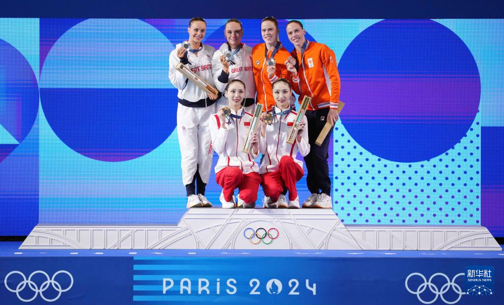 當(dāng)日,巴黎奧運會花樣游泳雙人項目的最后一項比賽雙人自由自選在巴黎奧林匹克水上運動中心舉行。中國組合王柳懿/王芊懿奪得冠軍。