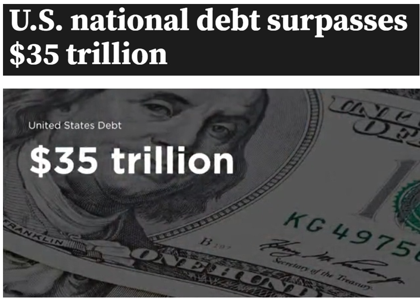 根據(jù)美國(guó)財(cái)政部近日發(fā)布的最新數(shù)據(jù),美國(guó)國(guó)債已超35萬(wàn)億美元。目前,美國(guó)債務(wù)總額比七國(guó)集團(tuán)中其他六國(guó)的國(guó)債總和還要多出15%。
