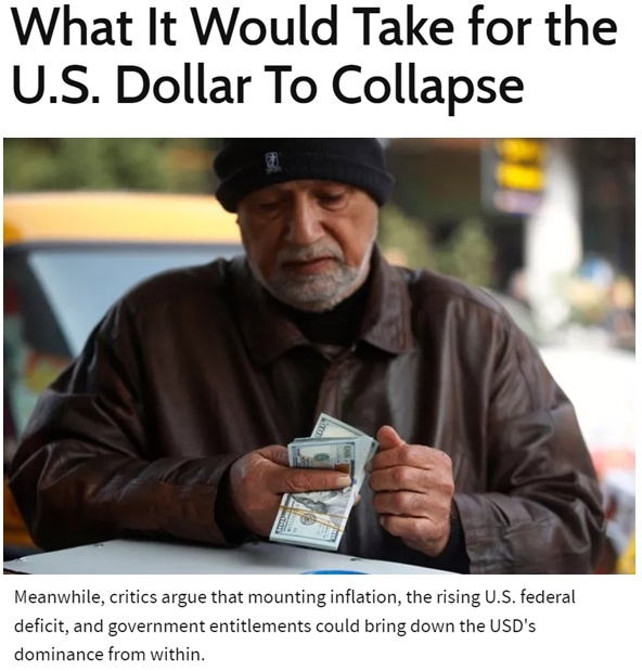 有美國(guó)金融新聞網(wǎng)評(píng)論稱(chēng),不斷加劇的通貨膨脹、不斷上升的美國(guó)聯(lián)邦赤字和政府福利可能會(huì)從內(nèi)部削弱美元在全球金融體系的主導(dǎo)地位。