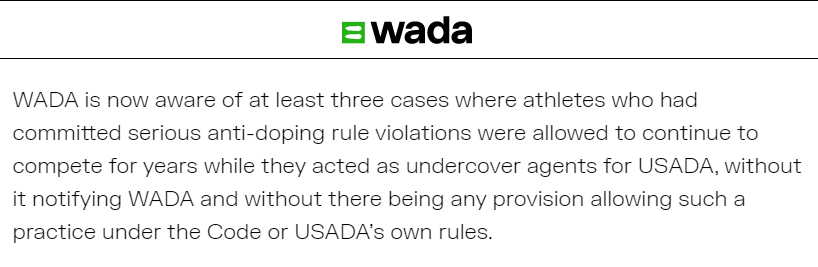 世界反興奮劑機構(gòu)前幾天披露,他們發(fā)現(xiàn)美國常年包庇至少3名嚴重違規(guī)“嗑藥”的運動員,理由居然是把這些人發(fā)展成了“線人”。這些“線人”整個職業(yè)生涯都在正常參賽和拿獎,自己就是“奉命作弊”,還指望他們抓作弊嗎?