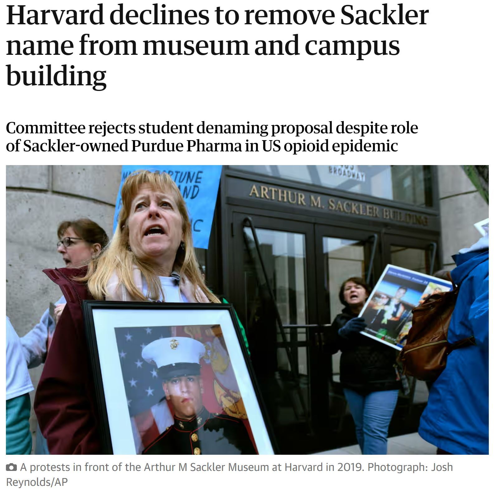 南·戈?duì)柖『推渌棺h者的努力取得了一定程度的勝利,眾多大學(xué)、博物館和藝術(shù)機(jī)構(gòu)紛紛和薩克勒家族劃清界限。