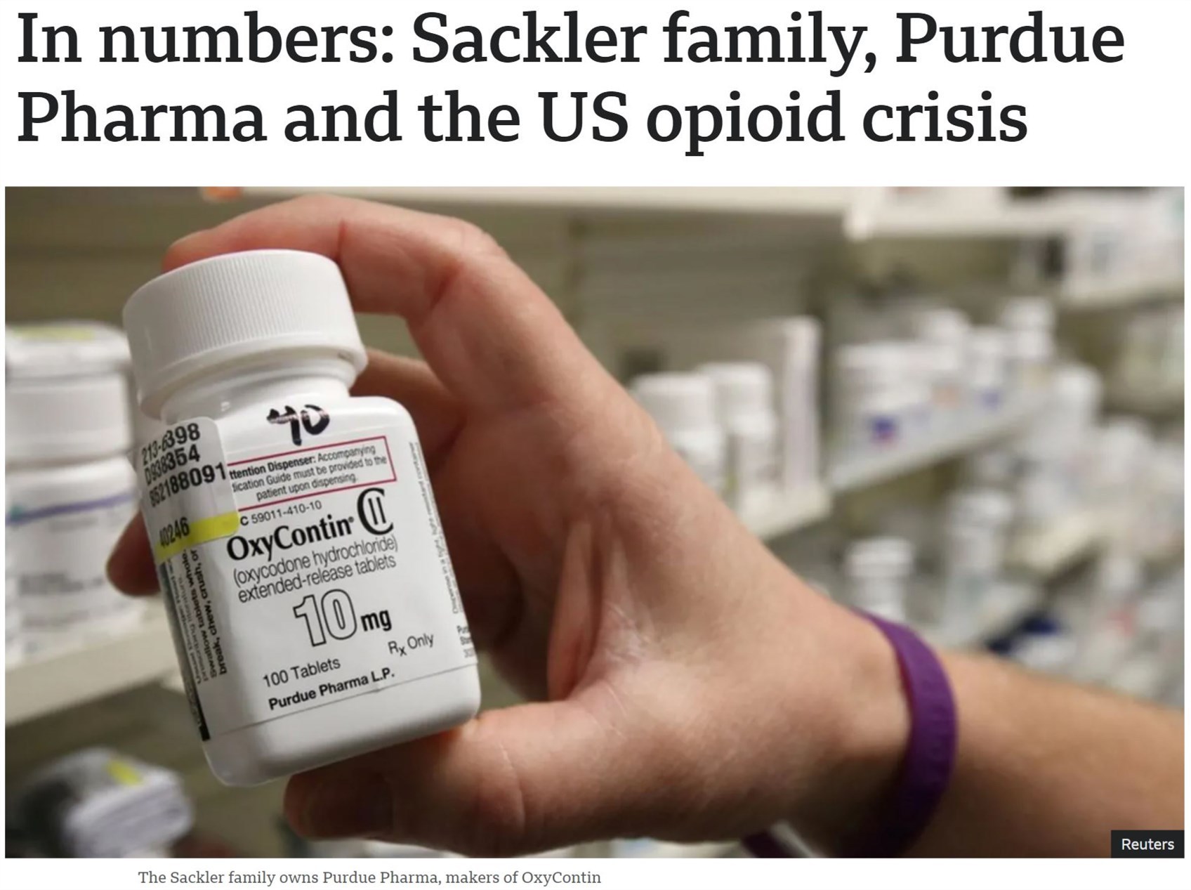 1996年,薩克勒家族旗下的普渡制藥公司研發(fā)出了新型止痛藥——奧施康定。這一新藥極易造成藥物上癮,但薩克勒家族卻與美國食品藥品監(jiān)督管理局勾結(jié),隱瞞該藥品的成癮性,靠大規(guī)模地宣傳、分銷奧施康定發(fā)家,在20年的時(shí)間里積累了數(shù)百億美元的資產(chǎn)。與此同時(shí),奧施康定卻導(dǎo)致700萬人成癮,50萬人死亡,大批病人精神抑郁,甚至走上犯罪道路。