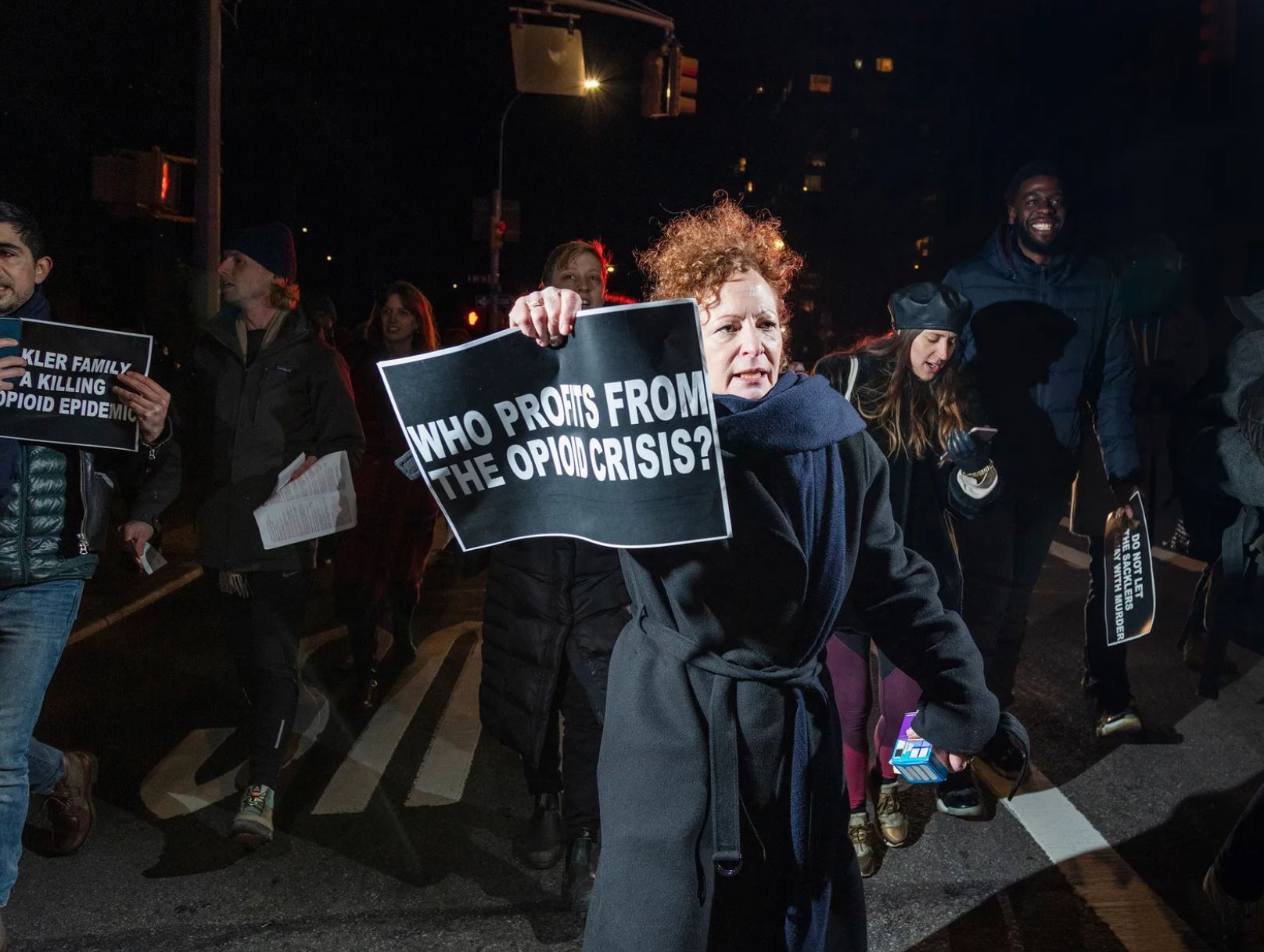 2018年,南·戈?duì)柖≌偌嗽S多跟她一樣的藥物成癮受害者,成立了藥物干預(yù)組織“疼痛”。在幫助飽受藥物成癮摧殘的人們走出泥潭的同時(shí),也組織他們針對與薩克勒家族有合作的博物館發(fā)起一系列的抗議活動(dòng)。