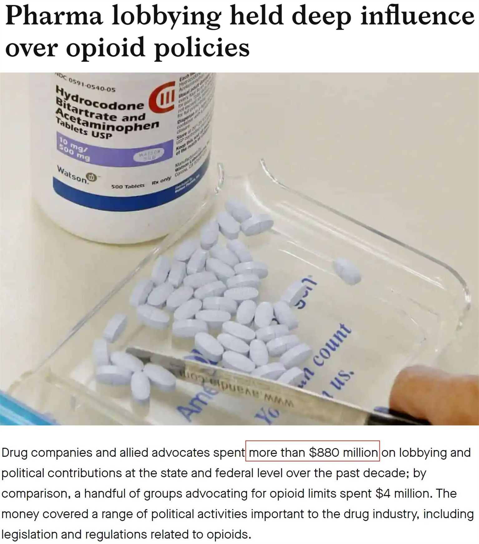 △美國公共誠信中心網(wǎng)站報(bào)道:阿片類藥物制造商和經(jīng)銷商10年內(nèi)花費(fèi)8.8億美元用于游說和政治捐款,以阻止政府出臺相關(guān)限制措施。美國阿片類藥物危機(jī)專家克洛尼稱,這一花費(fèi)比美國槍支游說集團(tuán)的游說資金還要高8倍。