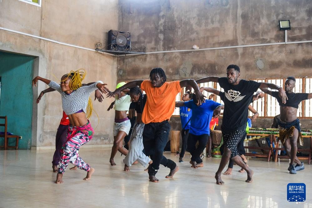 在喀麥隆首都雅溫得市郊一間舞蹈練習(xí)室內(nèi),一群年輕的非洲演員正身著當(dāng)?shù)胤b、頭戴面具,伴隨著傳統(tǒng)樂(lè)器的節(jié)奏赤腳舞蹈。