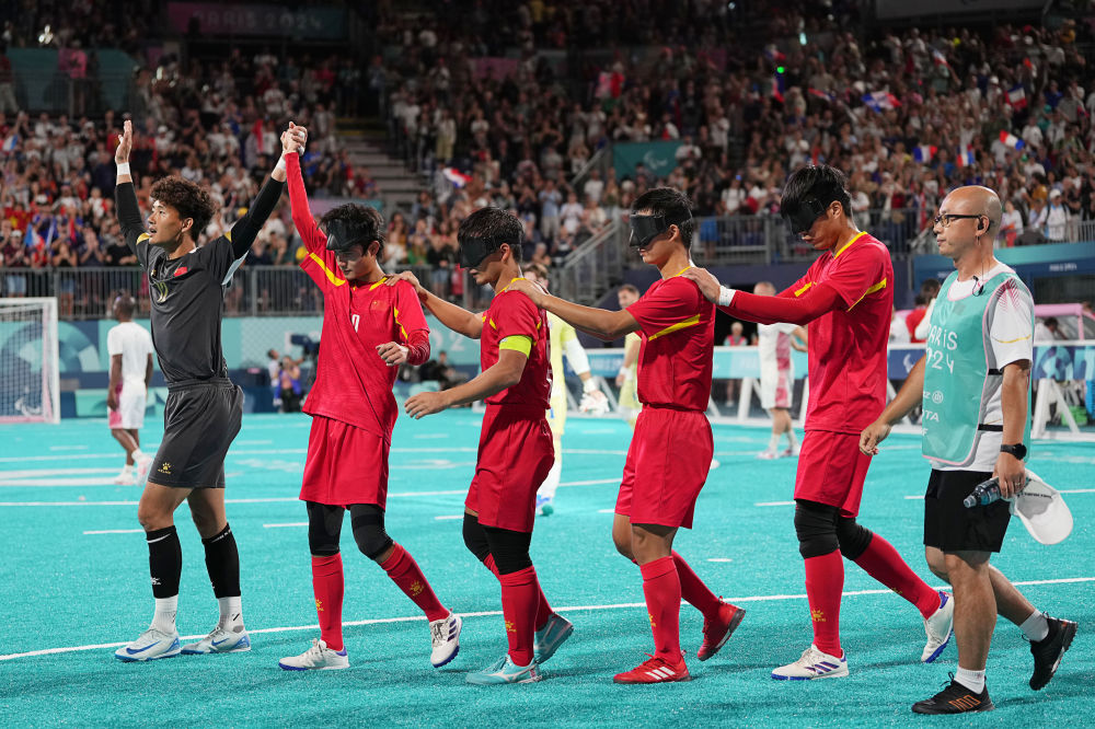 沒有華麗的踩單車過(guò)人,沒有炫酷的驚天倒鉤……除兩隊(duì)門將外,八名球員戴著黑色眼罩,在一次次奔跑、沖撞、摔倒、起身的動(dòng)作中循環(huán)往復(fù);比賽中,為不影響運(yùn)動(dòng)員發(fā)揮,現(xiàn)場(chǎng)觀眾只有在進(jìn)球之后才能歡呼喝彩。