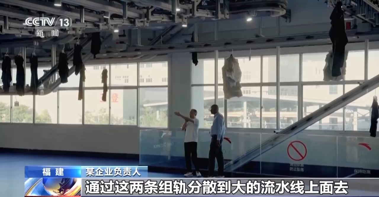 某企業(yè)負(fù)責(zé)人:我們的產(chǎn)品從上面下來(lái),通過(guò)這兩條組軌分散到大的流水線上面去。