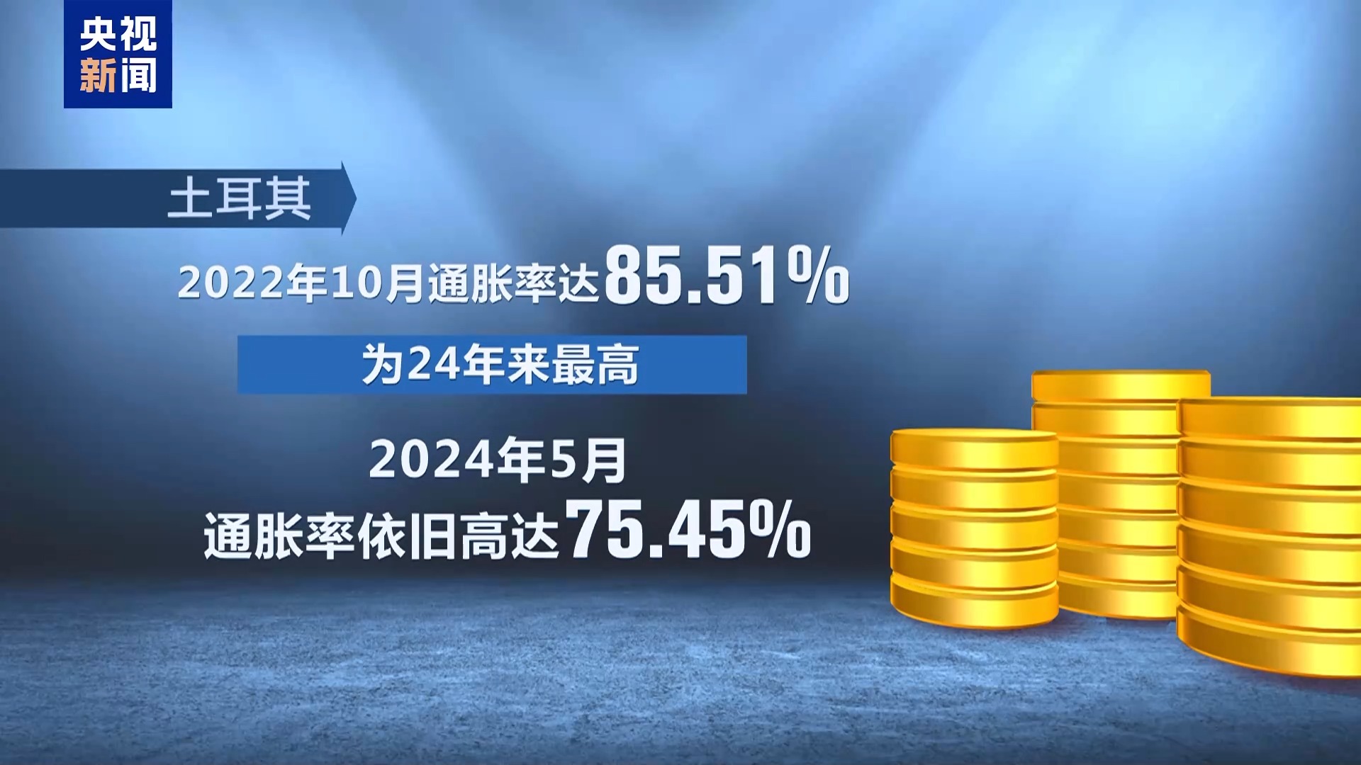 貨幣貶值伴隨著通脹的高企。土耳其2022年10月通脹率達(dá)85.51%,為24年來(lái)最高,2024年5月通脹率依舊高達(dá)75.45%。