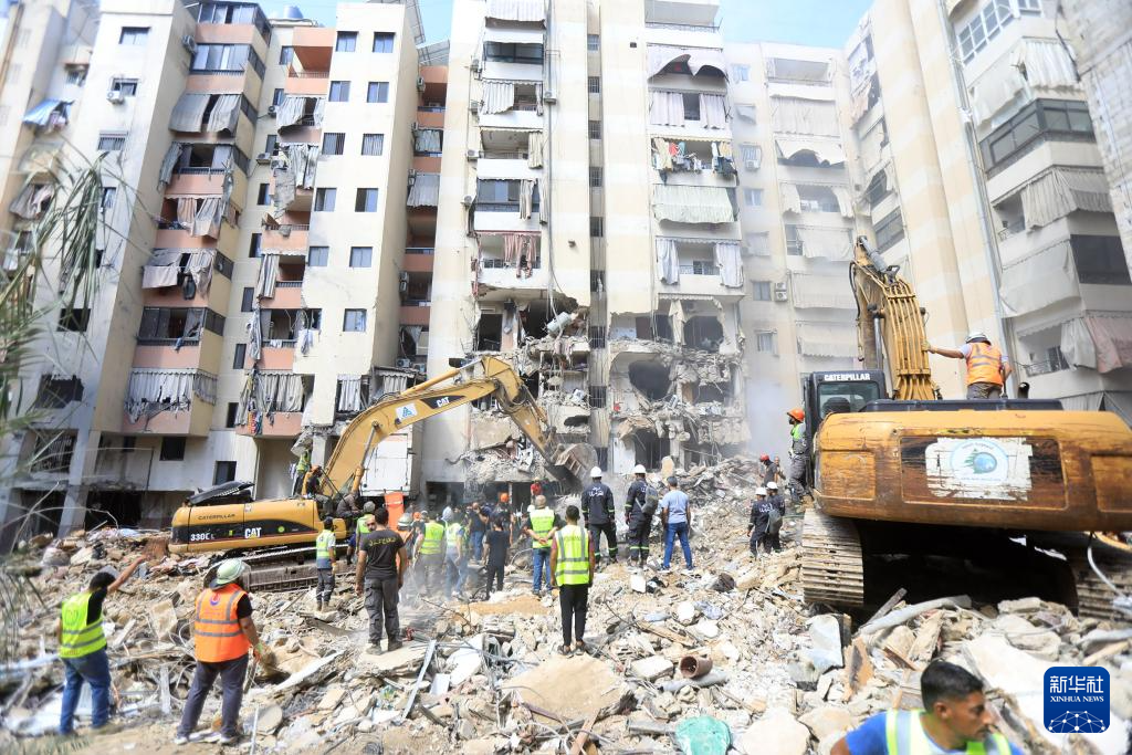 9月21日,救援人員在黎巴嫩貝魯特的襲擊現(xiàn)場工作。新華社發(fā)(比拉爾·賈維希攝)